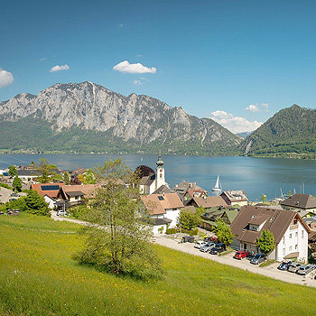 Ein weiteres idyllisches Dorf am Attersee, das von malerischen Bergen umgeben ist. Es ist ein großartiger Ort zum Wandern und bietet auch Möglichkeiten zum Tauchen und Schwimmen.